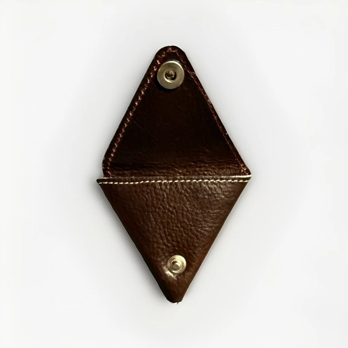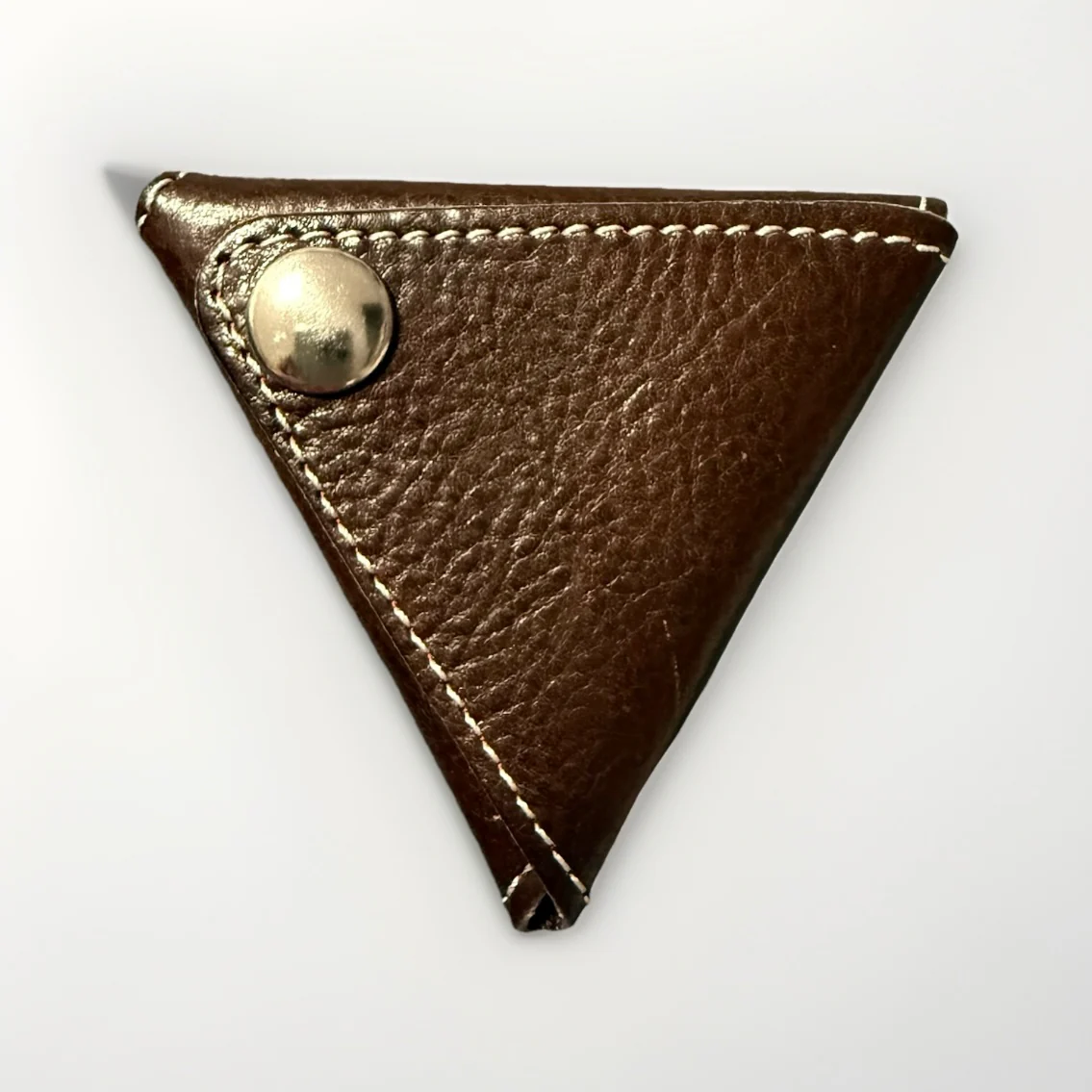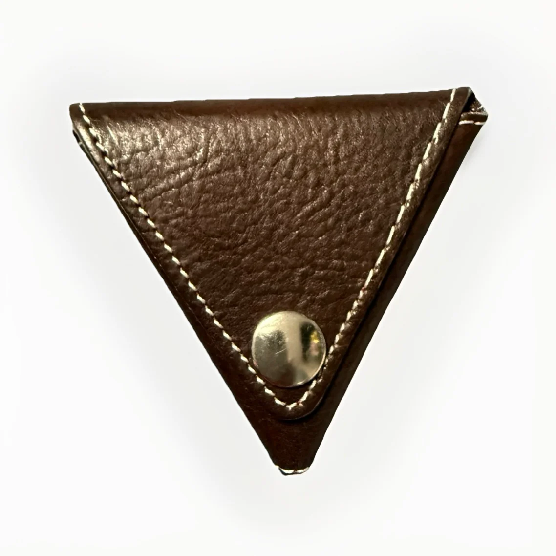 portamonete/portaoggetti triangolare realizzato in pelle italiana conciata al vegetale. Il design ispirato agli origami permette di aprire il portafoglio sia dal davanti che dal retro. Dotato di bottoni automatici in ottone massiccio, mantiene i tuoi effetti personali al sicuro, con un piacevole “clic” in apertura/chiusura. Le dimensioni del portamonete non sono adatte solo per le monete, ma anche per altri piccoli oggetti come chiavi e plettri.