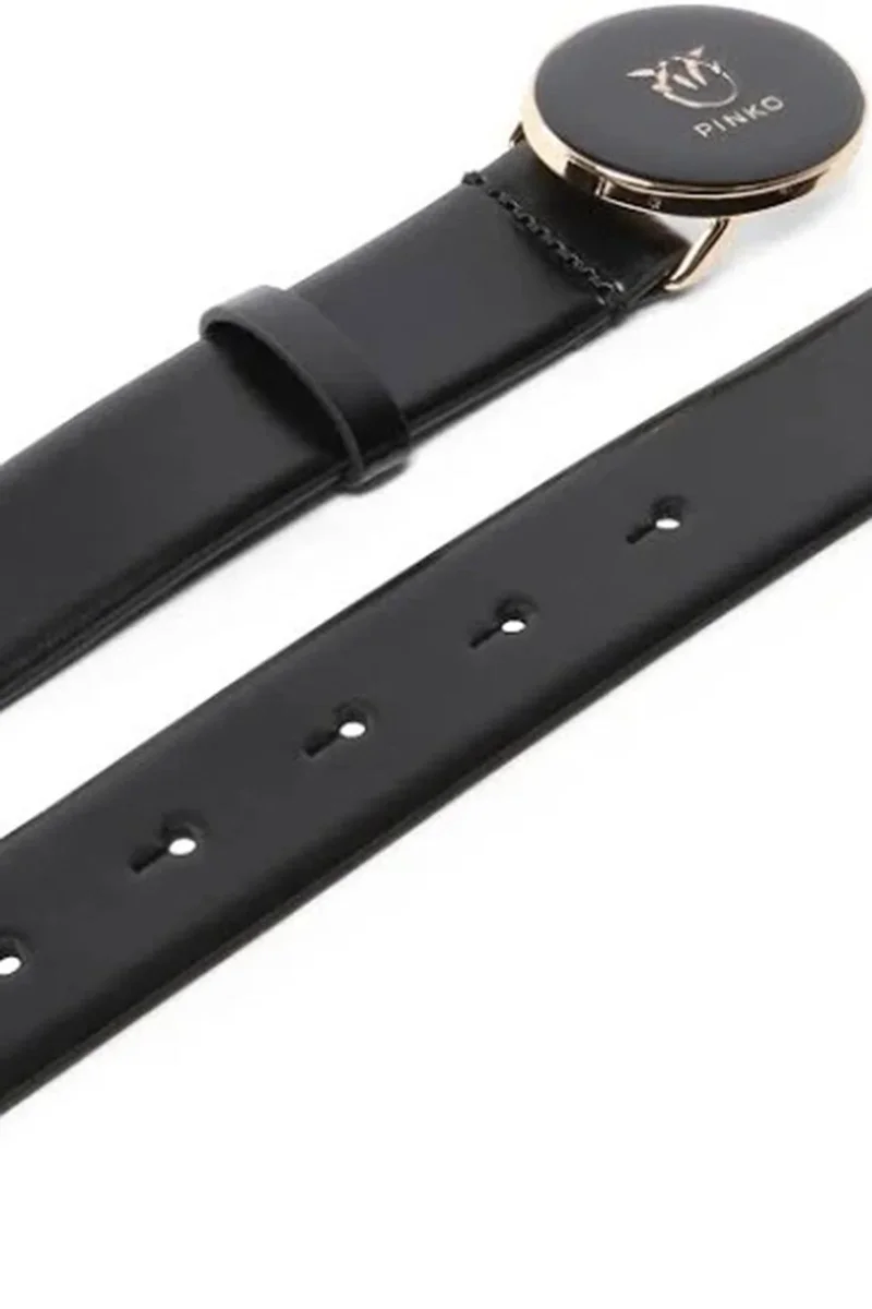 Cintura a vita bassa in pelle di vitello liscio con fibbia rotonda effetto smaltato con logo. Altezza: 2,8 cm