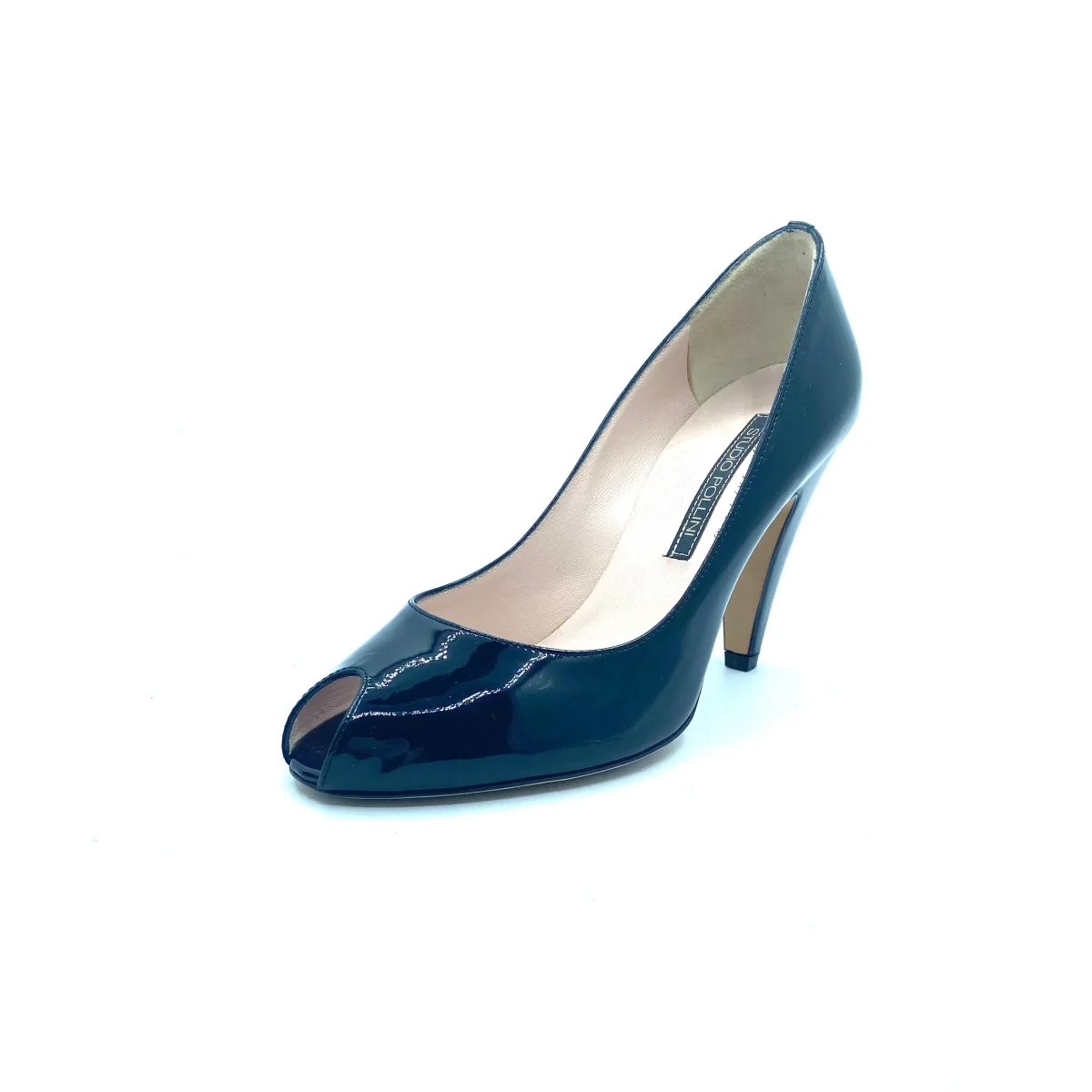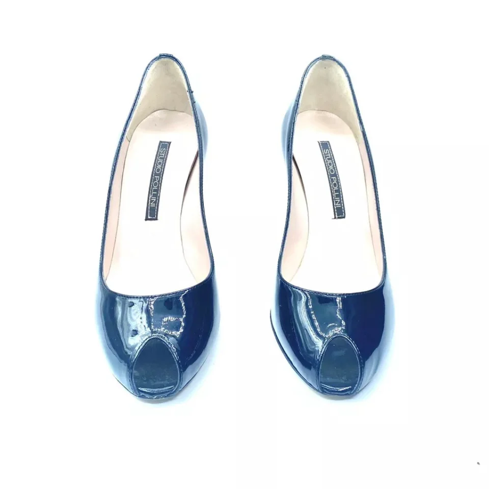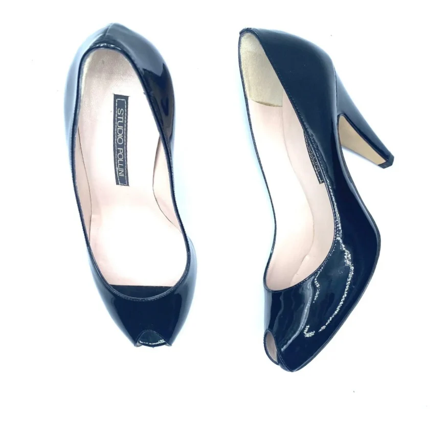 Bellissime décolleté in pelle verniciata nera aperte davanti STUDIO POLLINI fatti in Italia con materiali di alta qualità