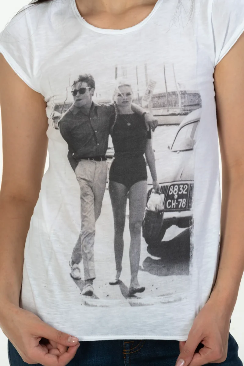 T-shirt 1921 Brigitte Bardot e Jacques Charrier in cotone made in italy