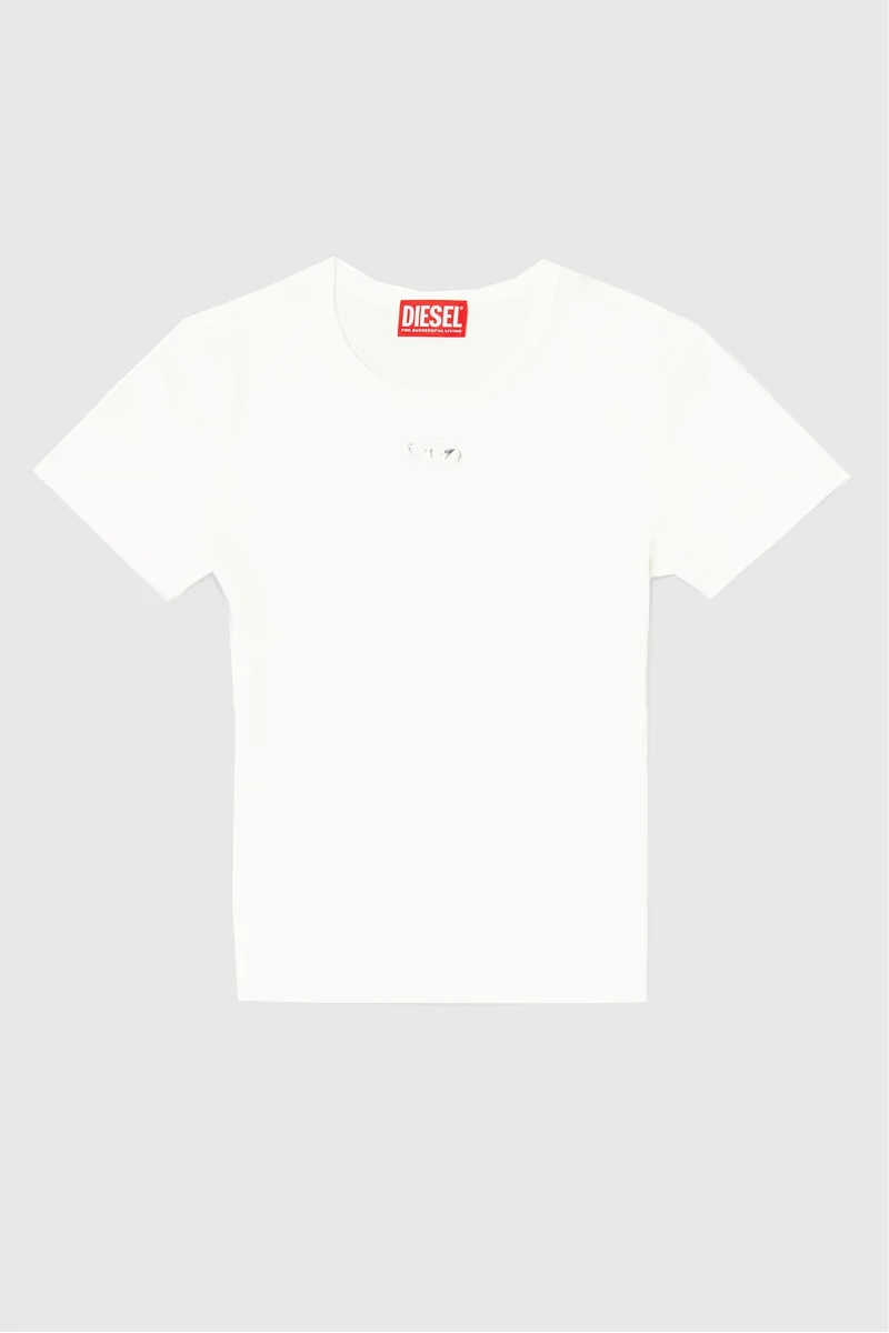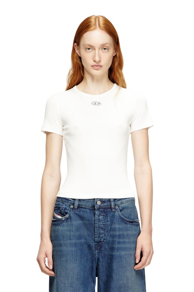 T-shirt slim fit con girocollo e maniche corte. Realizzata in un misto cotone ed elastan a costine sottili, garantisce comfort e una vestibilità aderente. Il logo Oval D metallico stampato a iniezione appena sotto il collo aggiunge un tocco distintivo. La maglia è stata sottoposta a tintura del tessuto e lavaggio in capo per una texture morbida e vissuta.