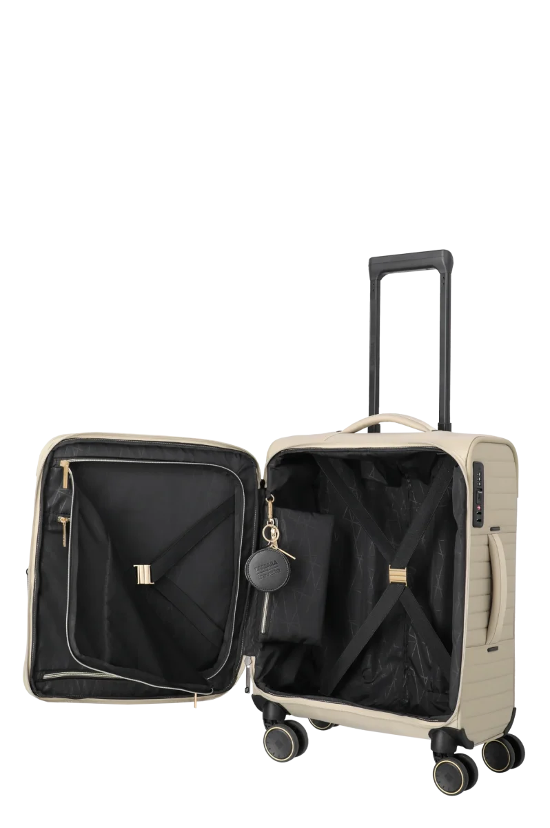 L’interno del trolley รจ progettato per offrire una gestione ottimale dello spazio. Include divisori in tessuto, cinghie ferma abiti e una fodera interna, mantenendo i tuoi oggetti ordinati e protetti durante tutto il viaggio.