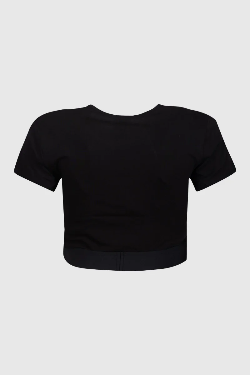 Questo crop top da donna è realizzato in cotone stretch e traspirante, con un’ampia fascia in jacquard con logo. Il logo oversize è volutamente “tagliato” per un tocco ironico.Composizione: 95%CO5%EA+ELASTIC58%PA28%PL14%EA