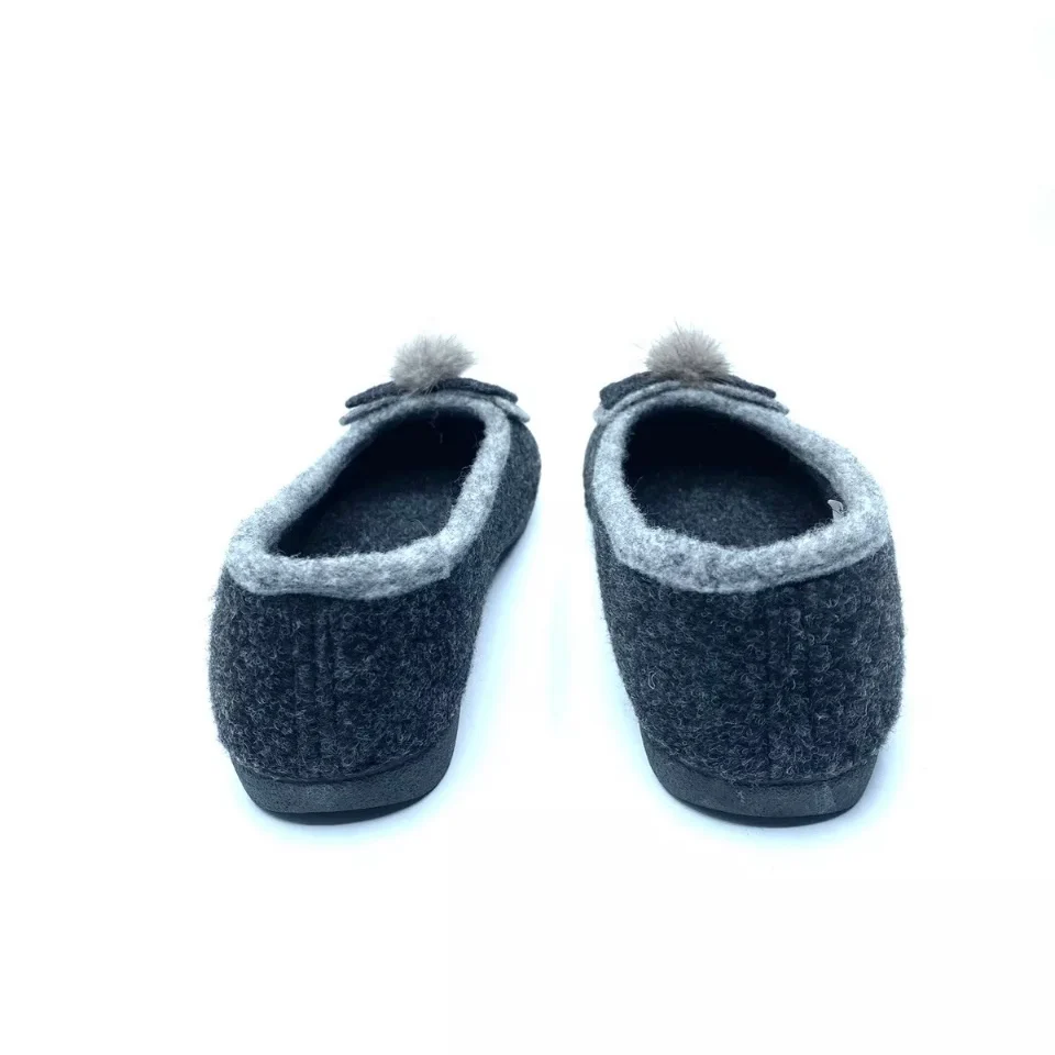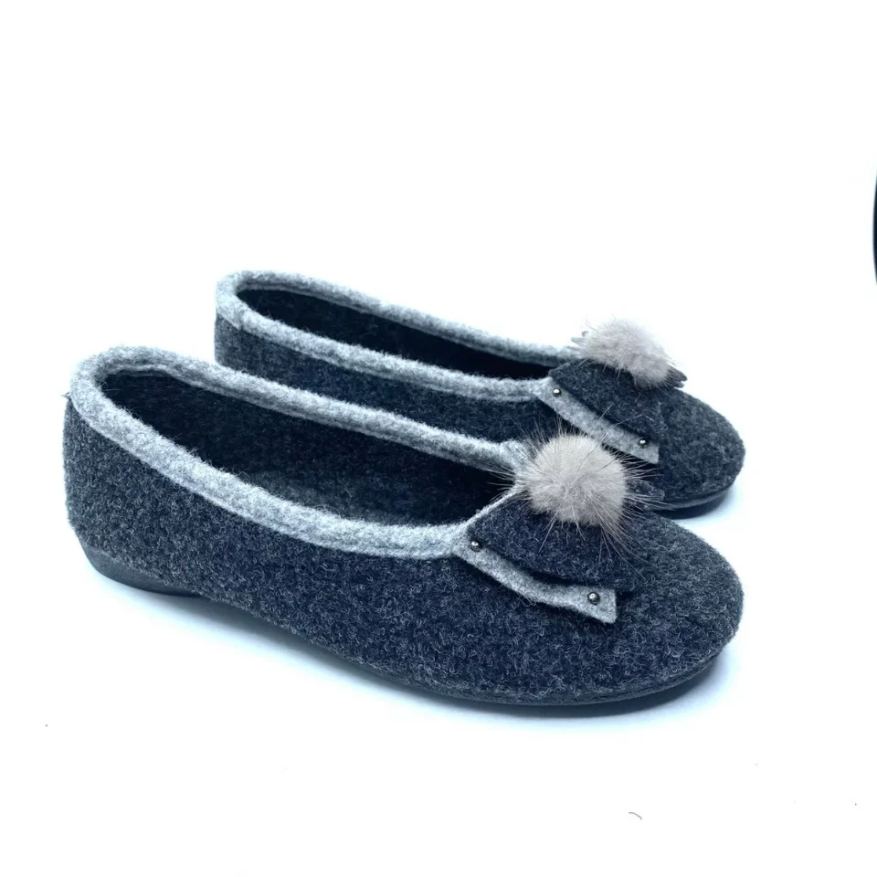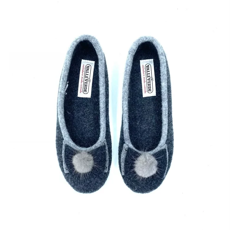 Bellissime ciabatte VALLEVERDE ciabatta chiusa moda comoda numero 35 in panno di colore antracite con bordo grigio chiaro e con fiocco e grazioso ponpon in pelliccia
