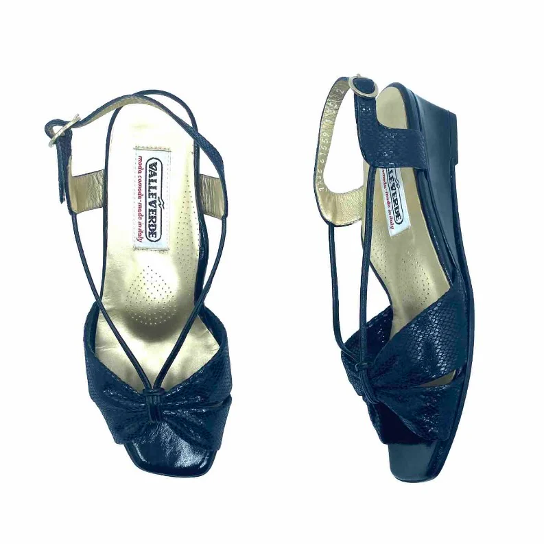 Sandali lavorazione flexible VALLEVERDE moda comoda numeri 35 in vera pelle, calzata morbidissima di colore blu scuro, con suola in cuoio m, zeppa 4 cm, soletta in pelle