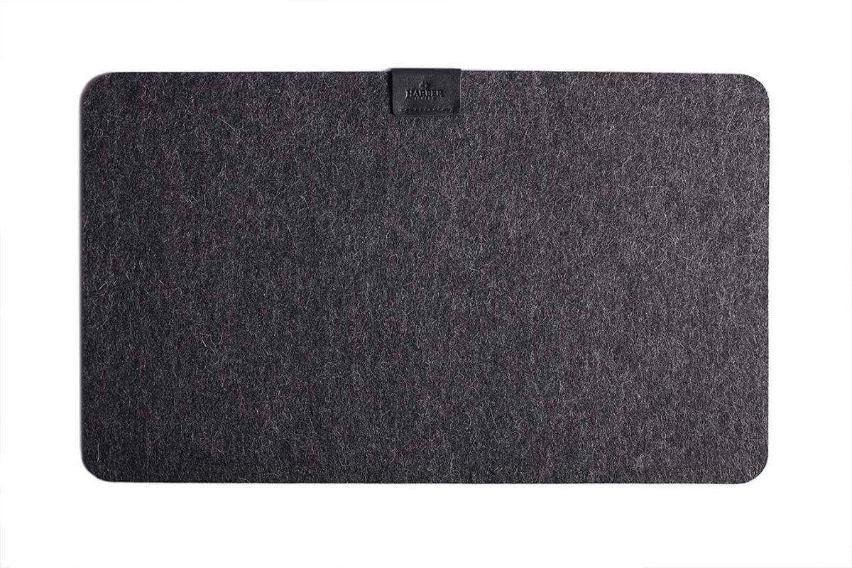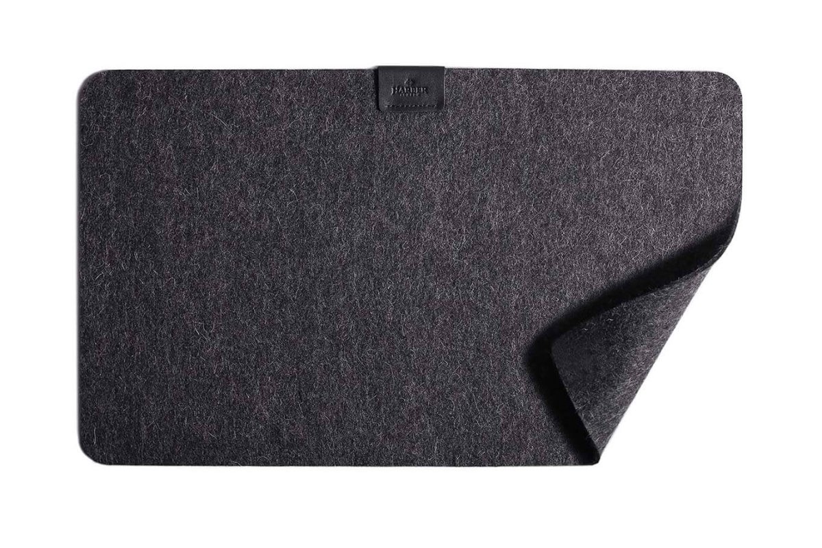 • 100% Wool Felt.• Soft to the touch. • Dense body for cushioning and protection.• Cable Holder For Desk Tidiness.• Expertly handcrafted by us, in our workshop in Spain.