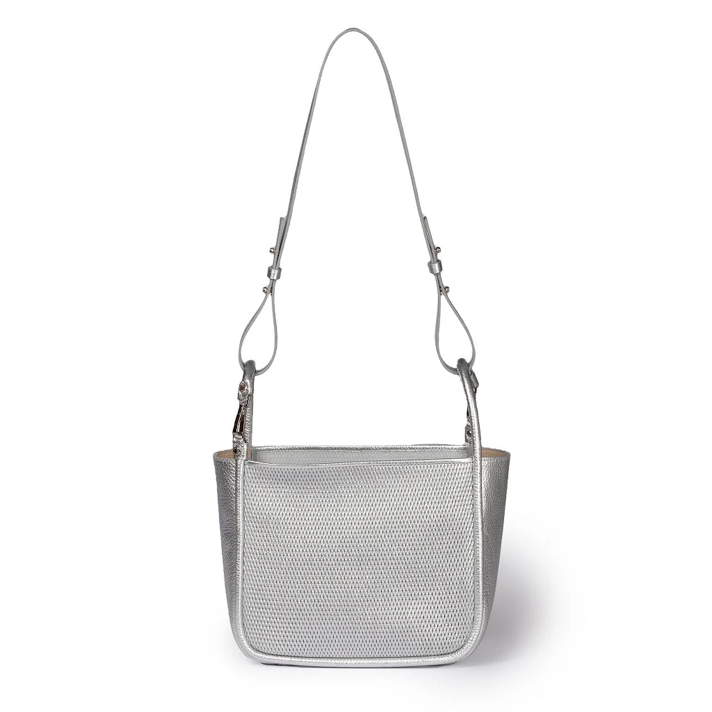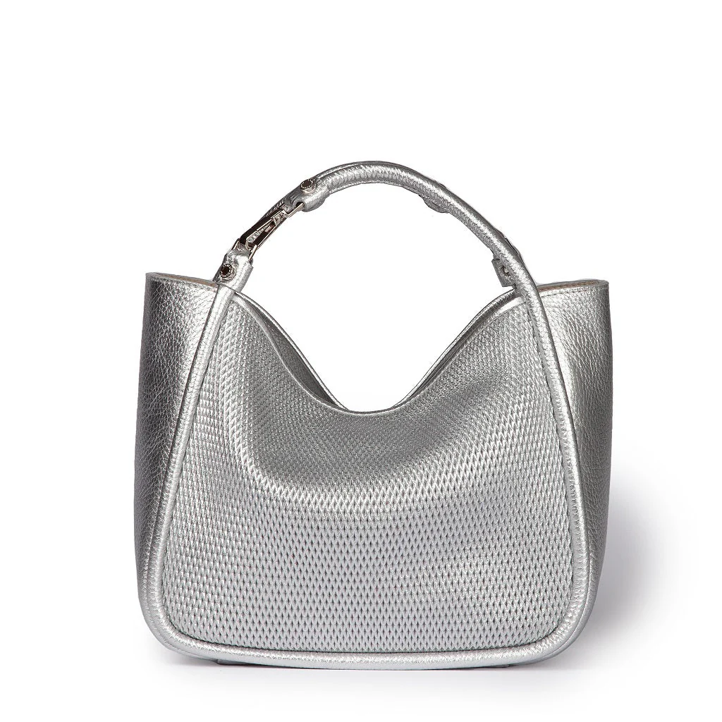 Morbida pelle martellata sapientemente micro-perforata con questo esclusivo design “a rete” che crea un’effetto vedo non vedo sui lati principali e delicatamente bordato e rifinita nella stessa pelle. Da portare a mano o a spalla e aggiungendo la tracolla si può anche indossarlo in modo più casual così da avere le mani libere. Le molteplici […]