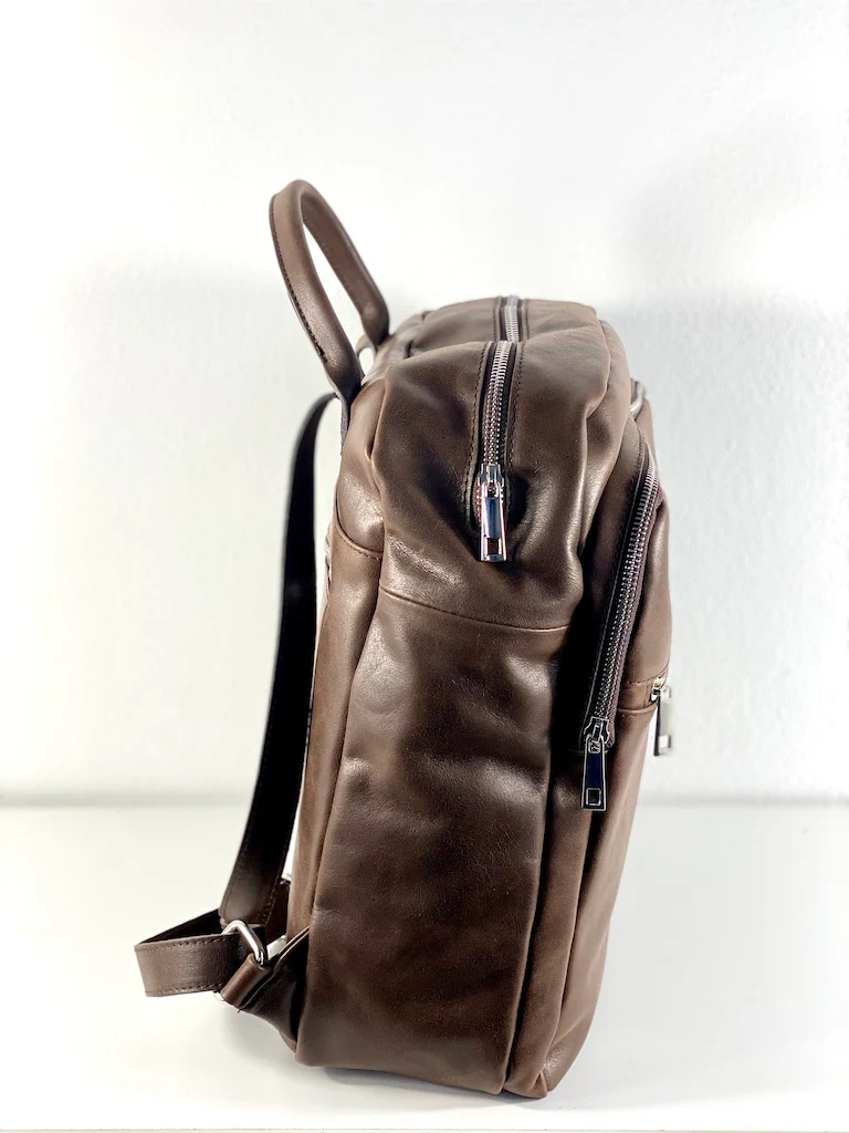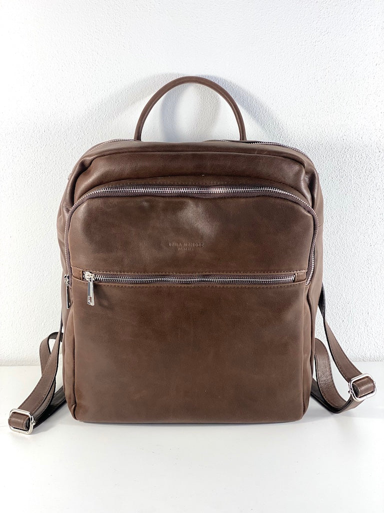 Zaino uomo in pelle di produzione artigianale con due comparti e tasca frontale.