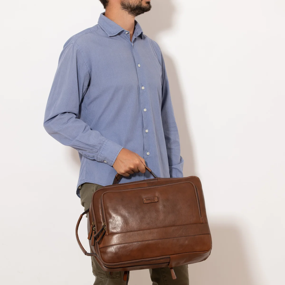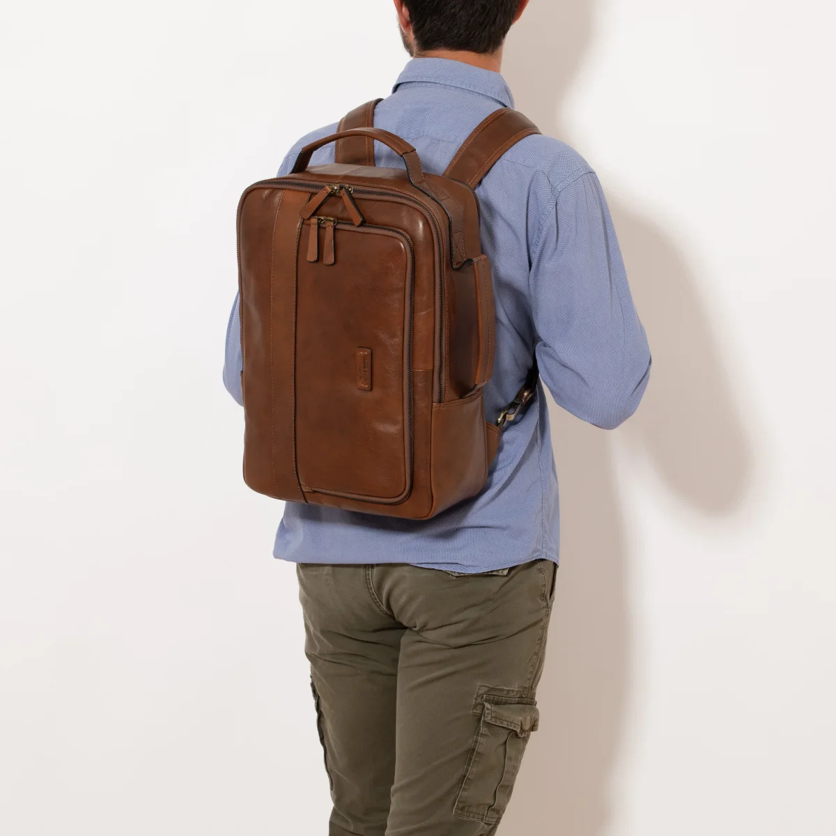 Donatello è un zaino/cartella in vera pelle, dall’effetto tamponato. È un modello pratico e capiente perché dotato di una serie di tasche per organizzare al meglio lo spazio.