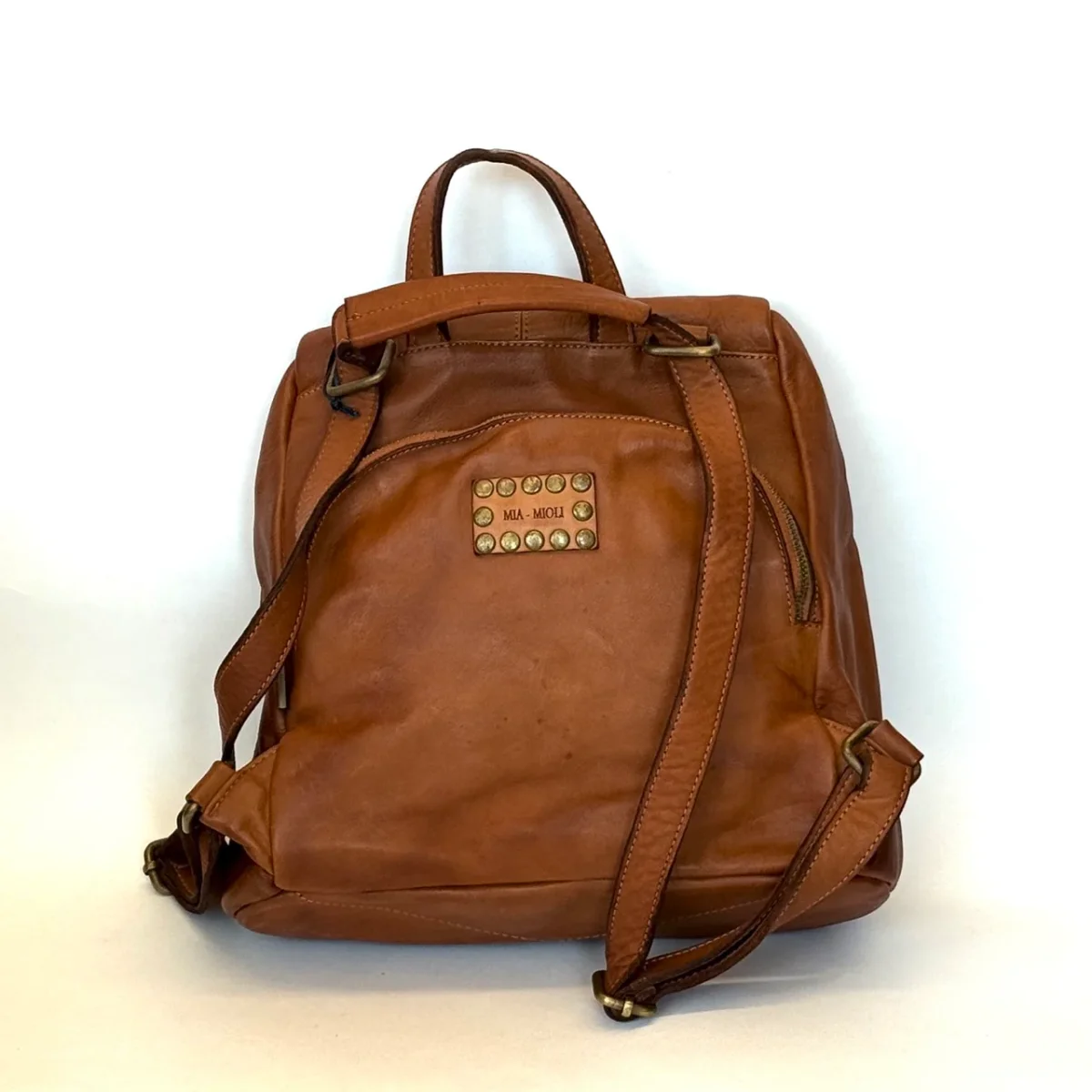 Zainetto in morbida pelle dal trattamento vintage con apertura sul retro antifurto. Dotato di due comode tasche laterali chiuse con zip.
