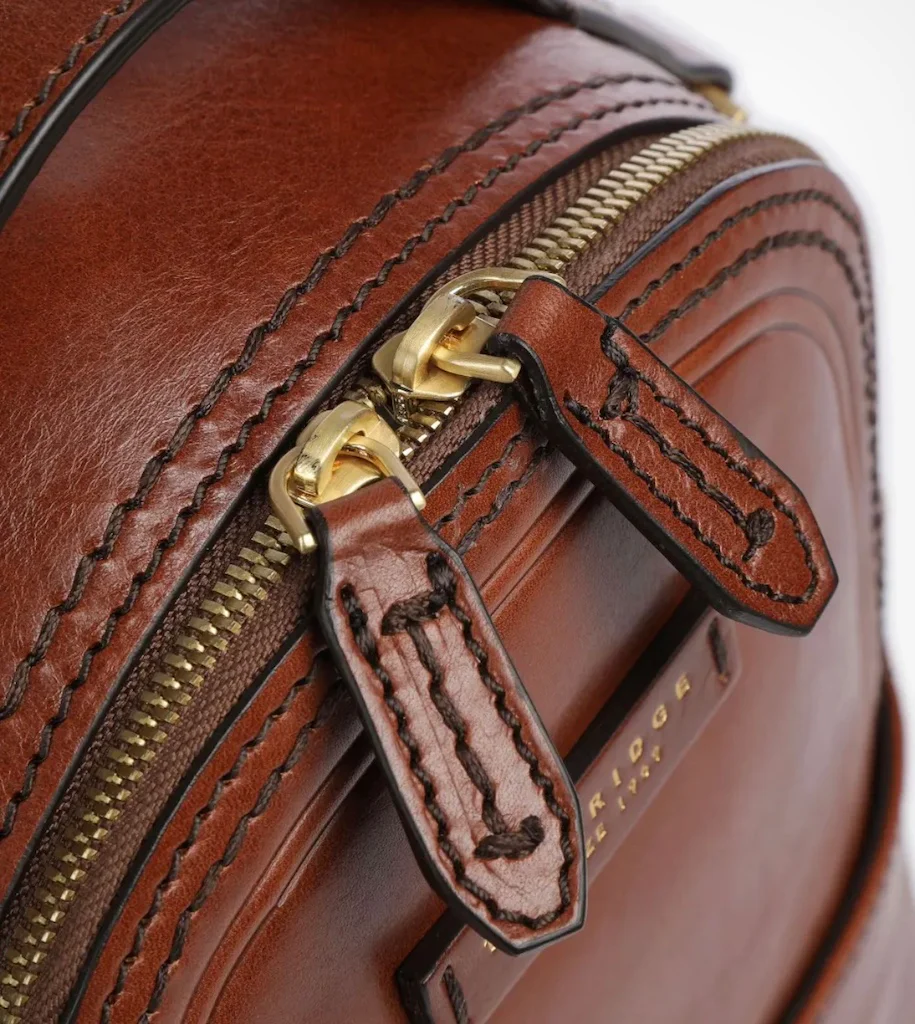 Zaino in pelle The Bridge chiuso con cerniera e dotato di una tasca frontale che chiude con calamita.