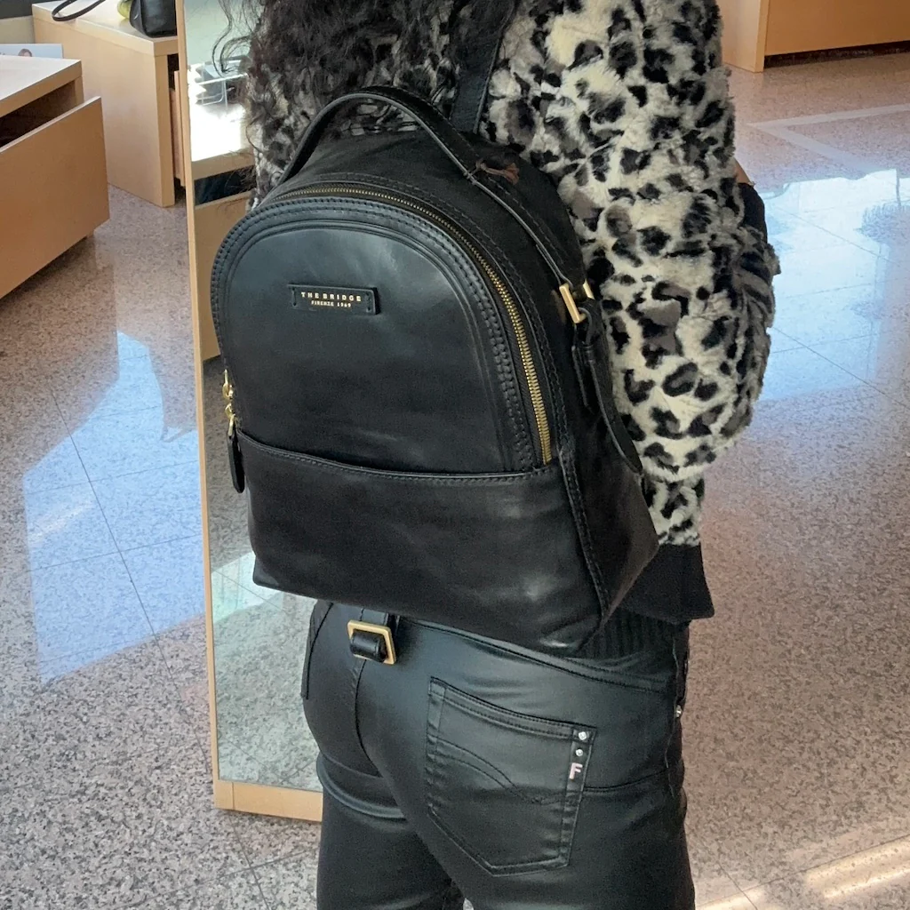 Zaino in pelle The Bridge chiuso con cerniera e dotato di una tasca frontale che chiude con calamita.