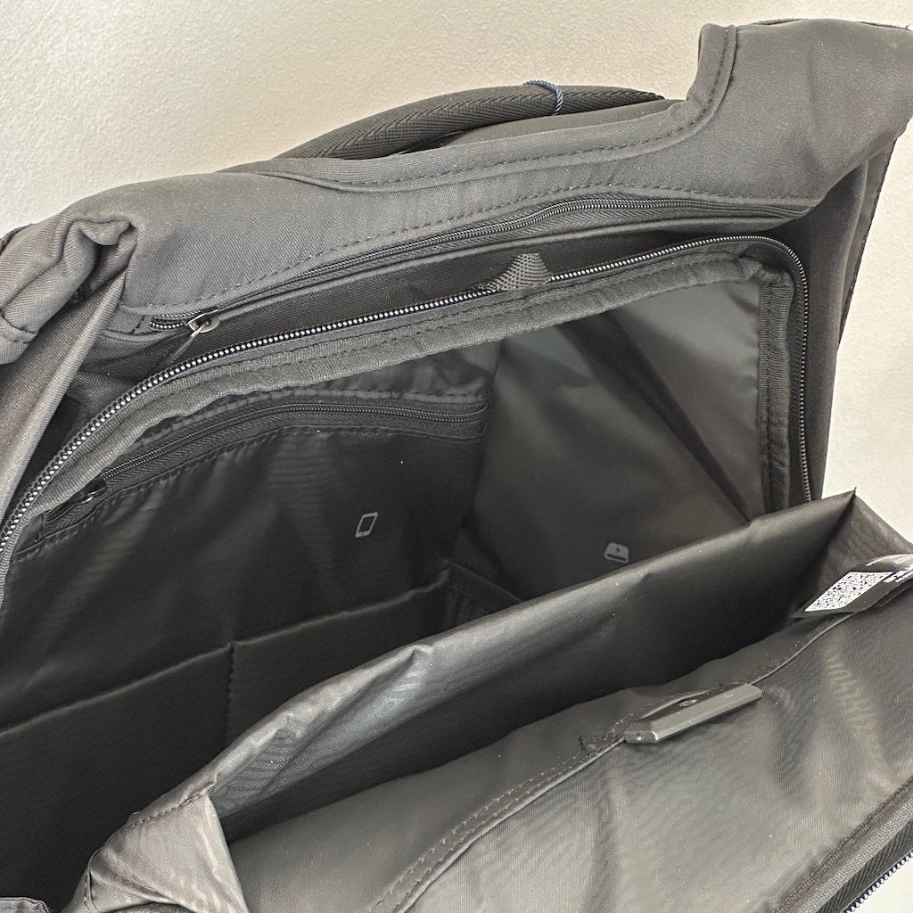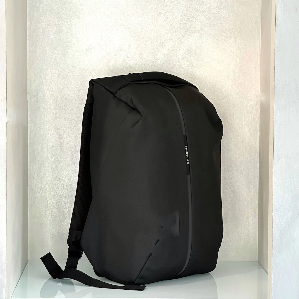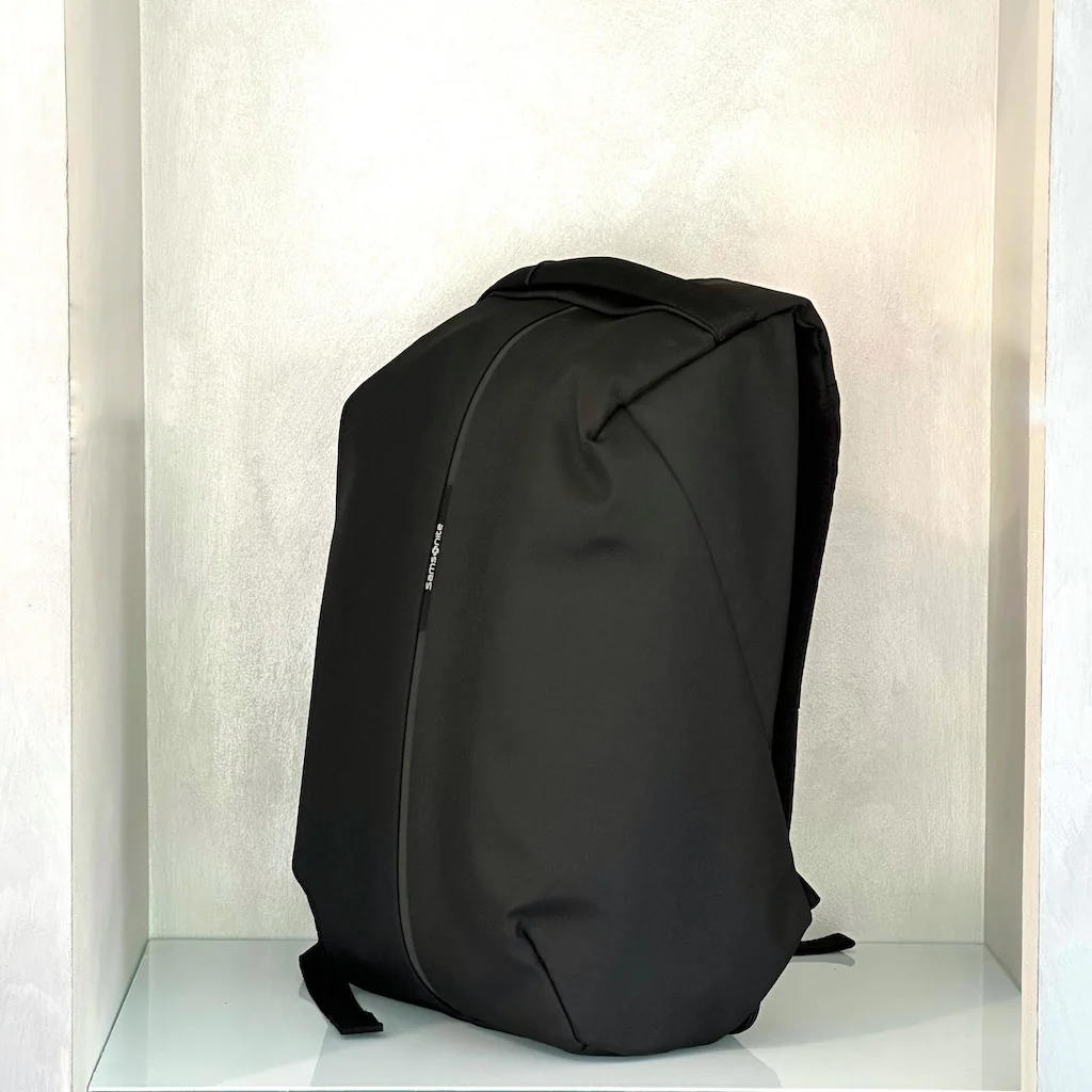 Da Samsonite, uno zaino antifurto con apertura sul retro e comode tasche chiuse con zip. Realizzato in tessuto resistente ai tagli. Dettaglio riflettente. Spallacci ergonomici.