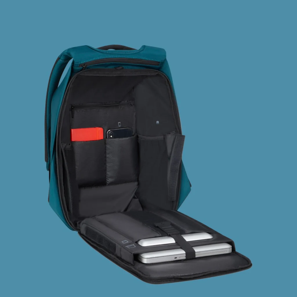 Organizzazione interna da ufficio, tasca porta bottiglia, tasca porta cellulare, vano rinforzato anti urto porta PC 14,1″.