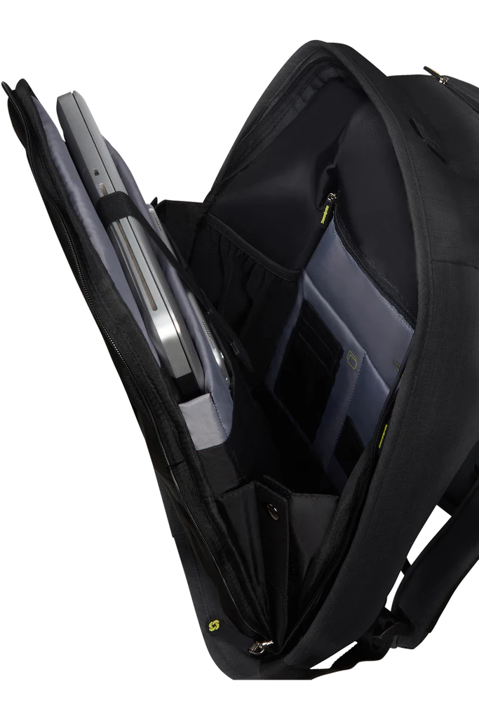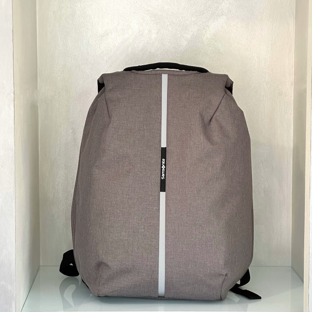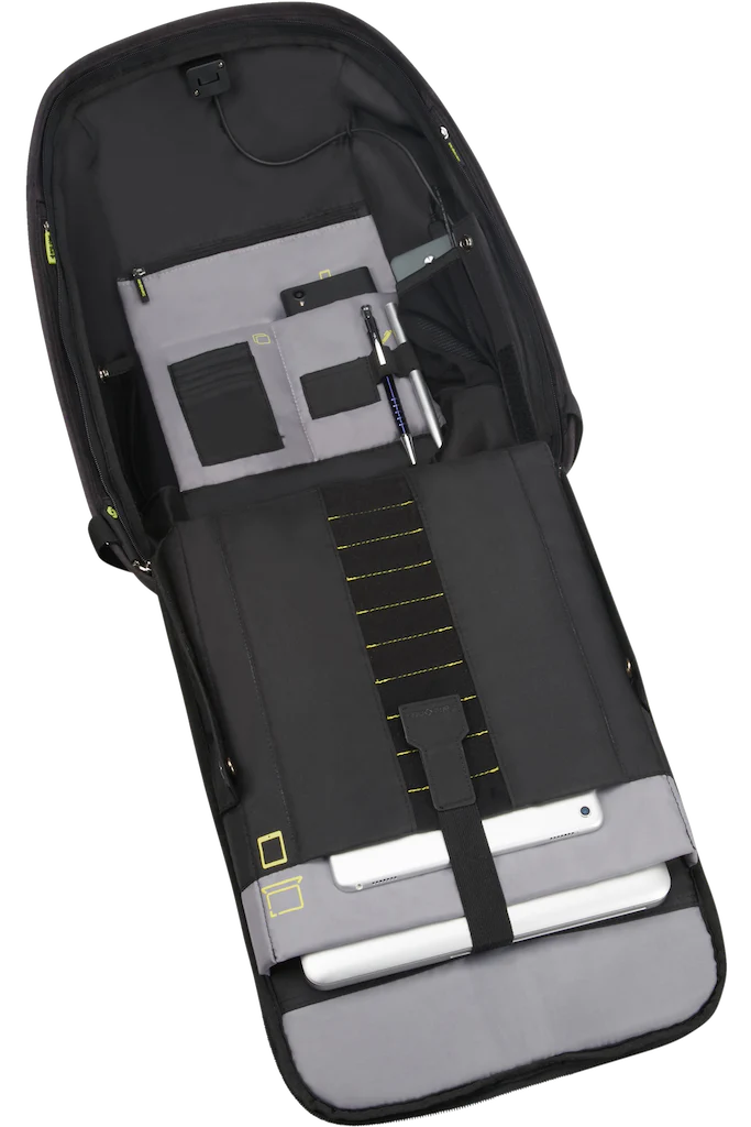Da Samsonite, zaino antifurto in tessuto riciclato antipioggia. Vano antiurto porta Pc 15,6″ e porta USB. Apertura del comparto principale accessibile dal retro, si apre fino a 180°. Unisce il comfort dei modelli urban a numerose caratteristiche di sicurezza, come lo strato di materiale antitaglio, una tasca RFID e dettagli riflettenti.