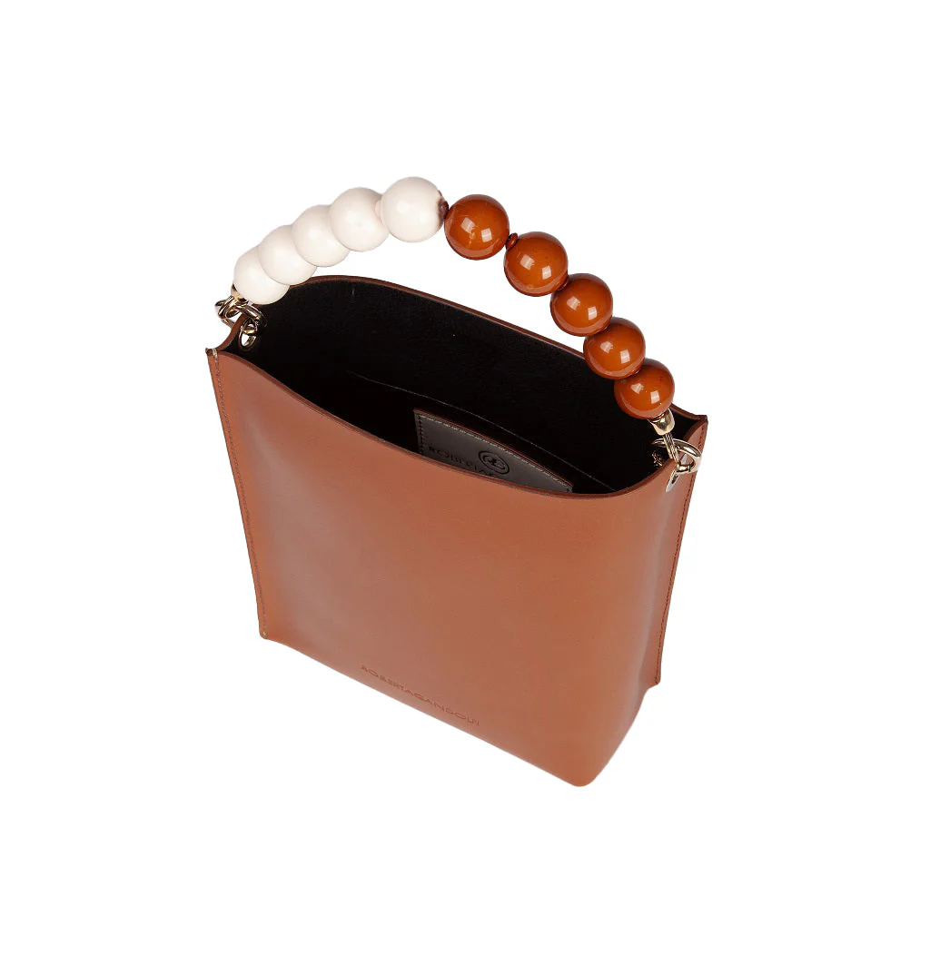 Pelle bicolor strutturata per il body abbinata al manico gioiello rendono Zoe decisamente unica e piena di stile
